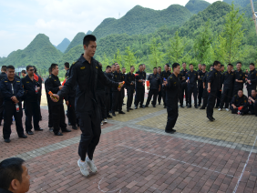 二、此次活動(dòng)邀請(qǐng)了監(jiān)管機(jī)關(guān)及客戶單位共17家到場(chǎng)觀摩指導(dǎo)。分公司經(jīng)理黃水波向蒞臨的各級(jí)領(lǐng)導(dǎo)和來(lái)賓致歡迎詞,對(duì)他們的到來(lái)表示熱烈的歡迎和由衷感謝。室外科目為跳繩、接力賽、拔河三個(gè)項(xiàng)目。跳繩每隊(duì)為3名隊(duì)員,記集體總成績(jī),各大、中隊(duì)精心挑選出各自跳繩尖子,積極為參賽人員吶喊、助威,一個(gè)個(gè)參賽的帥小伙瞬間變成了蹦蹦跳跳的“小女生”。接力賽為6乘50米,各中隊(duì)長(zhǎng)抽選運(yùn)動(dòng)健將,為著各自的榮譽(yù)和不服輸勁頭在賽場(chǎng)上拼命沖刺。最激烈的當(dāng)數(shù)拔河比賽了,各參隊(duì)每隊(duì)為10人,分為淘汰賽、半決賽和決賽,各大、中都將“大塊頭”、“大胖墩”推上賽場(chǎng),隨著裁判員的一聲哨音,現(xiàn)場(chǎng)仿佛炸開(kāi)了鍋,在旁觀加油鼓勁的人員似乎比拔河人員更賣(mài)力,邀請(qǐng)到的客戶單位領(lǐng)導(dǎo)也都在為各自派駐中隊(duì)參賽隊(duì)員加油,活動(dòng)氛圍瞬時(shí)達(dá)到頂峰。