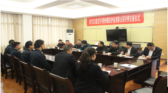 經(jīng)過半年的業(yè)務(wù)對接和洽談,銅仁本部于11月16日至20日正式接手德江、石阡、印江、江口、松桃五縣農(nóng)業(yè)銀行守押業(yè)務(wù)。銅仁市公安局保安大隊(duì)大隊(duì)長王世軍、銅仁市農(nóng)行副行長任達(dá)輝、銅仁市農(nóng)行保衛(wèi)部經(jīng)理?xiàng)蠲汀€~仁本部總經(jīng)理陳葉、副總經(jīng)理劉興華、劉樹等出席了五縣守押業(yè)務(wù)交接儀式。